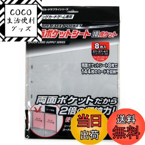 商品情報商品の説明説明 従来のカード用ポケットシートは、シートの表面(片面)にしかポケットが備わっていなかったため、TCGをバインダーにファイリングすると対向ページが無駄になっていた。 両面にポケットが備わる当シートは、『2倍の収納力』とカードイラストやテキストを『見開き』で閲覧できることが特長。 各社カードバインダーとの互換性有り。シート1枚にTCGを18枚(片面9枚)収納。 2穴・3穴・4穴リングバインダー対応。 セット内容1パック=8枚入り主な仕様 トレーディングカードゲーム(TCG)専用の両面ポケットシートbrタイプ:シートbrポケット数(片面):9ポケットbr枚数:8枚br収納枚数:144... |