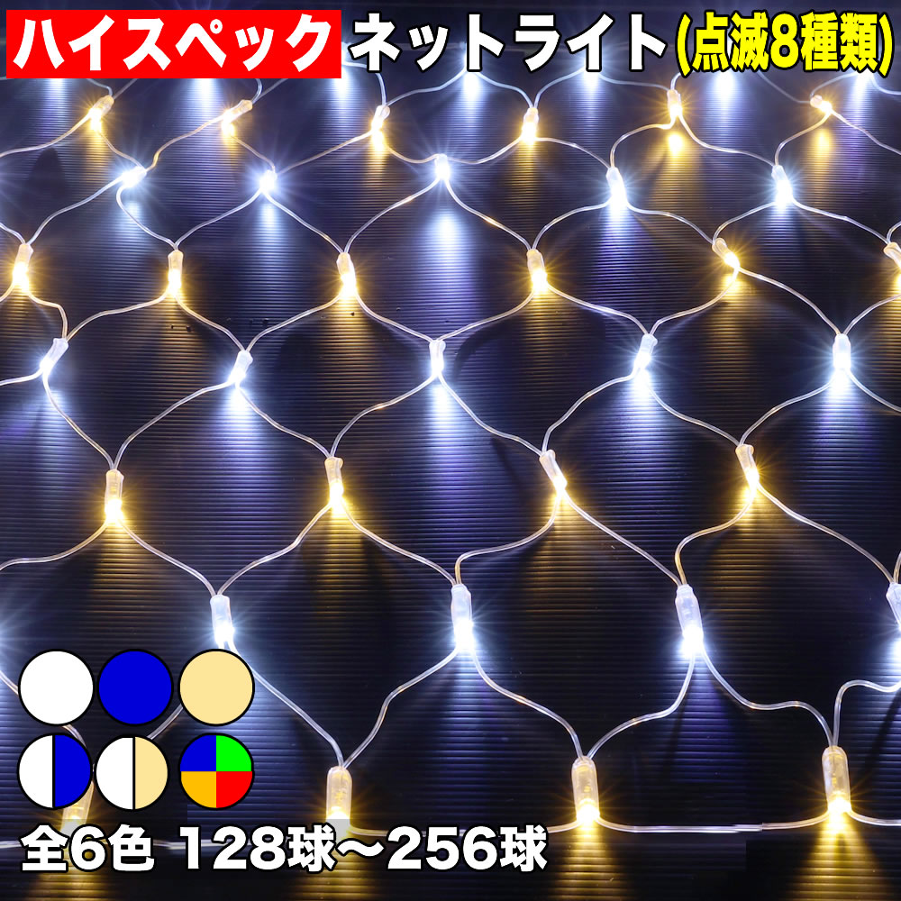 【全6色】【128球〜256球で選択】 ネット イルミネーション (網状) LED 点滅8種類 Aタイプコントローラー付セット 最近は、LEDイルミネーションも各社が販売しており、会社はもちろん、自宅等にもイルミネーションを飾り付けするケースも増えてきました。イルミネーションで、木、庭、クリスマスツリー 等をライトアップでき、明るく印象を変える事ができます。最近は、価格安いイルミネーションも増えていますが、品質面に不安を感じた事はありませんか?「防水性能がしっかりしておらず壊れた…」「コントローラーの作りが簡素で不安」 等々で、失敗されたお客様、 品質にこだわったイルミネーションを使ってみませんか?当社のイルミネーションは、購入してから 安心してお使い頂く為に、とにかく品質面にこだわった商品です。こだわりのポイントをご紹介いたします。 当商品の特徴 (1)ライト、コントローラー、コンセント... |