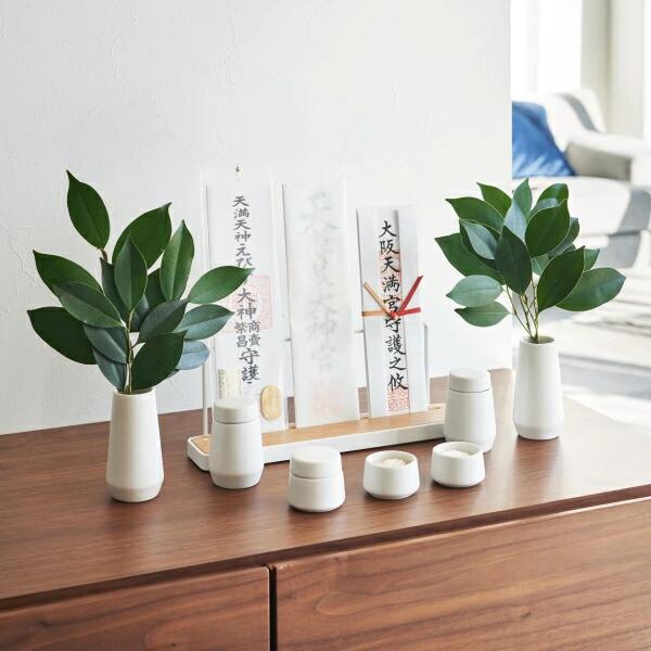 サイズ : 榊立/約W5×D5×H9.5cm 重量 : 榊立/115g、瓶子/95g、水玉/85g、皿/50g 素材 : 本体/陶器 山崎実業の神具 タワー 7点セット 山崎実業は、「ワクワクする心に従い行動する。」という理念に基づき、製品を通じて社会に、ほんの少しの感動と驚きを創造することを目指している会社。 暮らしを彩るインテリア雑貨の専門メーカーです。 本格的な神棚から、モダンな神棚までどちらにも合うシンプルな神具セット。 必要とされる神具が一度に揃う7点セットです。 マットな質感で上品な雰囲気です。 お手持ちの神棚や神札立てにも合わせやすいシンプルなデザイン。 神棚のお供え物用に、一度に揃う榊立て1対、瓶子1対、水玉1個、皿2枚のセット。 瓶子、水玉には蓋が付きます。 ※神札、神札立ては付属しておりません。 ■サイズ:榊立/約W5×D5×H9.5cm ■重量:榊立/115g、瓶子/... |