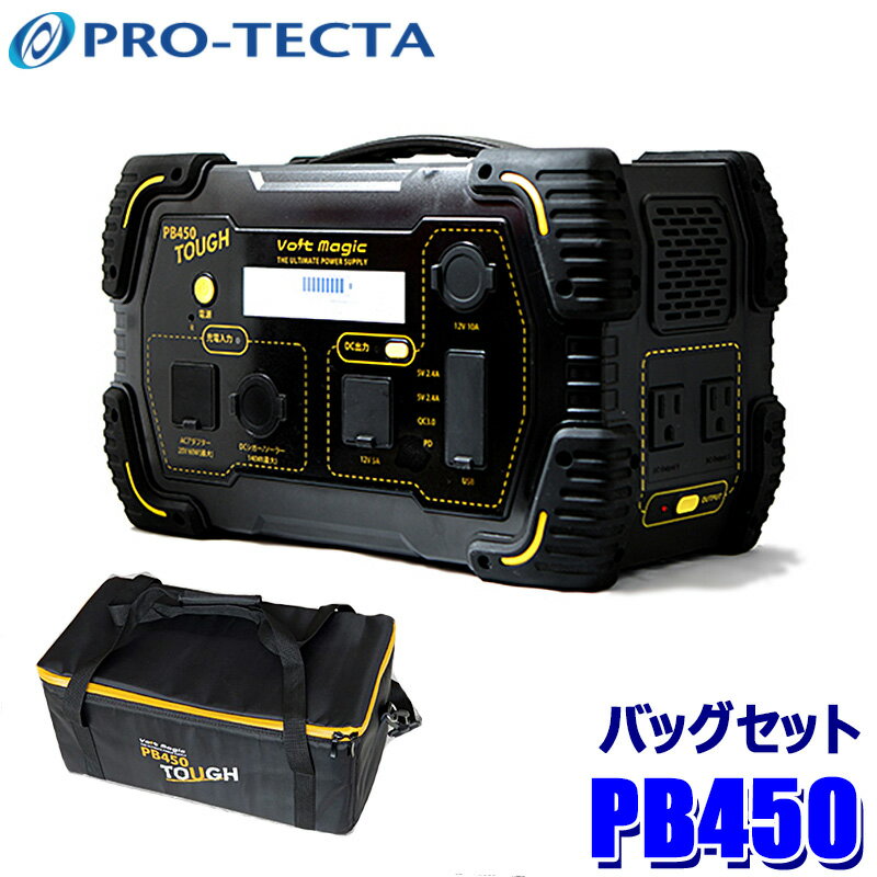 製品情報 商品セット内容 PB450 TOUGHPB450専用バッグ 専用設計のバッグは、標準で付属するACアダプタ、シガーライターソケットアダプタなどの付属品に加え、専用ソーラーパネルも収納可能。スタイリッシュに持ち運びできます。 バッテリー 容量 125000mAh 450Wh ※1 製品サイズ 304 x 186 x 167 mm 製品重量 5.4kg 使用温度 0〜40℃ 保存温度 -10〜45℃ AC出力電圧/周波数 100V/60Hz正弦波 インバーター容量 500W(瞬間1000W) AC出力 1個 DC出力 USB 4個 USB-C PD 45W 1個 USB QC3.0 1個 USB 5V/2.4A 2個 DC12V(合計5A) 4個 ※2 内径:φ2.1mm/外径:φ5.5mm(センタープラス) シガーソケットDC12V(最大10A) 1個 サイクル寿命 1000回 ※... |