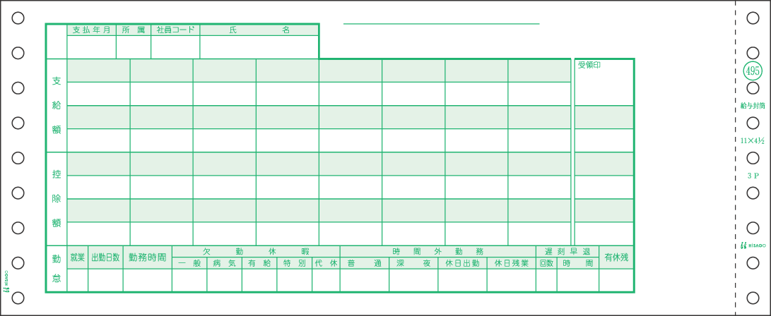 【商品説明】●入数:250セット●サイズ:10×5(254×127mm) ●ミシン目切り離し後のサイズ:9_1/2"×5"(241×127mm)●複写枚数:3 ●項目名:1,給与明細書;2,給与明細書;3,給与明細書【ご注意】 お取り寄せ商品のため、ご注文後のキャンセル及び返品はご遠慮願います。 納期はご注文後、1週間ほどかかります... |