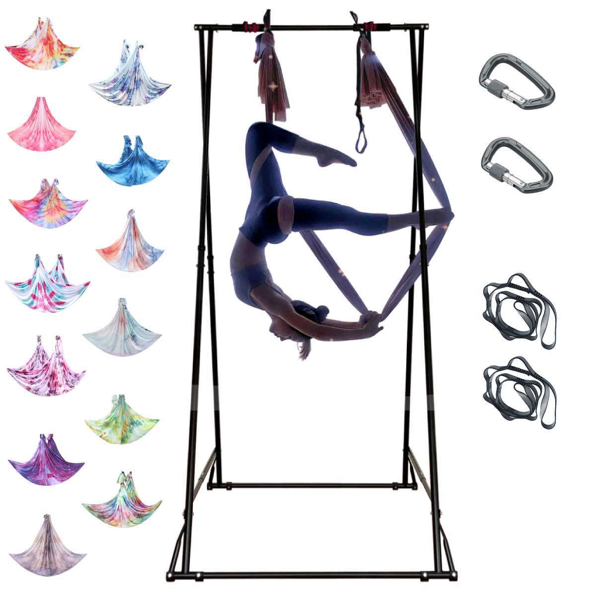 このセットがあればご自宅で空中ヨガが始められます。 <セット内容> 折り畳み式スタンド 1台 工具(スパナ)1個 空中ヨガ用ファブリック1枚 ロック付きカラビナ 2個 高さ調整可能スリング 2個 日本語取り扱い説明書・無料YOUTUBE動画・LINE日本語サポートあり レビュー投稿お礼プレゼント 【折り畳み式スタンド】 国際基準の品質が認められており、日本を含め各国で特許権も取得している多目的スタンドです。 195cm〜260cmまでの調節が可能なので、お部屋の天井高に合わせることが出来ます。 エアリアルヨガが楽しめるように改良した限定モデルです。 低空ヨガにも空中ヨガにも邪魔にならないようサイドバーを上下可動式に。 扱いやすいよう軽量のまま、高さ・奥行き共にバリエーション豊かな調整機能で、どんなお部屋にもフィットしやすく、使わない時は折りたたんで収納出来るので、場所を有効活用できるのも嬉... |