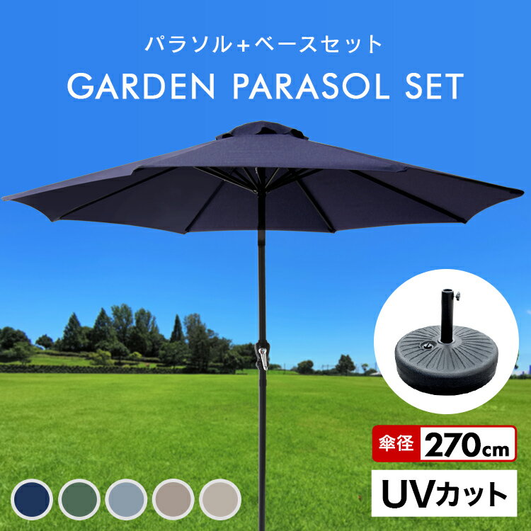 270cmパラソルと21kgベースのお得なセットです。 2.7メートルのビッグサイズ! 日差しから守るガーデンパラソルです。 バーベキューにピクニックにビアガーデンと晴れた日には欠かせないアイテム! ハンドル式で開閉が簡単! ハンドルをくるくる回るだけなので、女性でも簡単に傘を開くことができます。 解体も持ち運びも簡単! パラソルの支柱は2つに分かれるので、持ち運びもラクラク! 水や汚れに強い撥水加工! 雨に濡れても水を弾くので、雨漏れする心配はありません!お手入れもサッと拭くだけで簡単! ※完全防水ではありません。 中に水を入れて使用するパラソルベーススタンド。 パラソルベースには、口径キャップが2種類付属しています。 ガーデンやベランダでのパラソルの使用でオススメ! 使用後は中の水を抜けば軽くなるので持ち運びにも便利です。 商品仕様 【パラソル】 オープン時サイズ(約):幅2700×奥... |