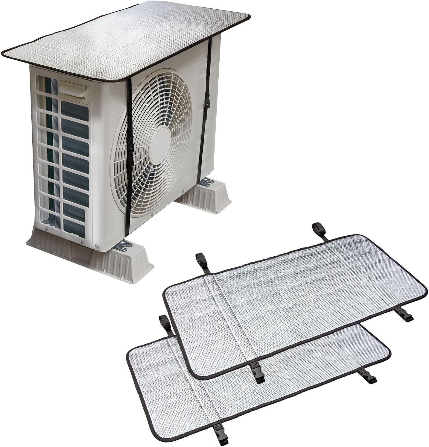 エアコン室外機カバー 2枚セット 室外機 日除け 遮熱シート 日よけ 雨よけ 雪除け 防水 防塵 汚れ対策 節電 断熱 エアコンしつがいき アルミ製 省エネ 室外機シール 日よけカバー 節電 UVカット 取り付け簡単 室外機カバー 【省エネ・節電の室外機カバー】改良版エアコン室外機カバーは、アルミホイル光反射素材を採用、遮熱3層構造、約45%の熱線をカットし、室外機の熱を下げて、エアコン冷却効果の向上、節電省エネ対策のエアコン室外機遮熱カバー! 【遮熱保護、劣化防止】室外機カバーには、優れたレーザーアルミ箔と複合綿を採用しており、室外機を直射日光が当たるのは防げるので、エアコン室外機の老化を防止、効果的に雨を防ぐことがで、エアコンの室外機をカバーし、錆びを防ぐ。 【室外機 日除けの仕様】サイズ(約)95x46cm、2枚。エアコン室外機カバーの厚さ3mmで室外機をしっかりカバーし、耐季節性と... |