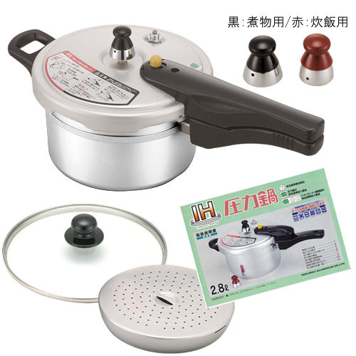 商品の仕様●サイズ:内径×高さ(mm)180×120●底径(mm):150●質量(kg):2.0●容量(L):2.5●付属品:蒸し器、三脚、料理ブック●※6Lタイプには、蒸し器が2個(穴なし、穴あき)がついています。●圧力を変えられる低圧から高圧、そして超高圧まで、圧力の細かい設定が可能。蒸し料理に、圧のかからないスチーム機能もついています。●圧力が、見える鍋内部の圧力のかかり具合は、3色のカラー表示で一目瞭然。圧力が上がるにつれ、黄→緑→赤と変化します。火力を調整して、緑の状態をキープしてください。●おいしさの穴場 独自の機能「アロマピー」。加圧前に空気孔から余分な空気を逃がし、圧がかかると自動的に空気孔を密閉するため、味、香り、色、栄養を生かした調理ができます。圧力が一定以上になったときは安全装置にも。圧力とスチームの使い方●設定1:低圧魚や野菜など、煮くずれしやすい食材の調理や、プリ... |
