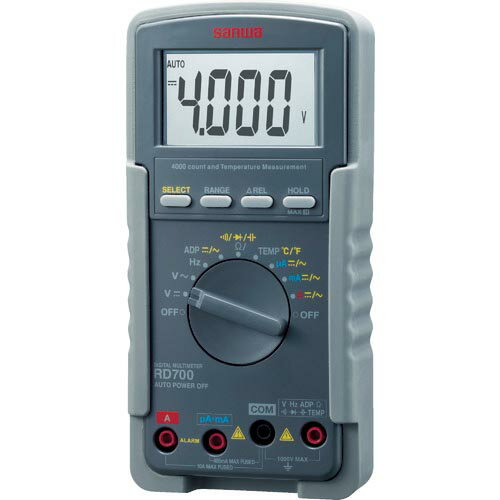 特長:高い安全性と信頼性を備えたスタンダードなデジタルマルチメーターです。DC V基本確度±0.3%、AC Vの周波数特性40Hz〜1kHzの標準タイプです。1mの落下に耐える堅牢設計です。コンデンサ、周波数測定など多数の機能を搭載しています。直流と交流の電流測定ができるモデルです。明るく見やすいバックライト付きです。ローパスフィルタ100Hz/500Hzで高調波カットしています。-10℃〜50℃と広い使用温度範囲です。PC計測に対応するUSB通信機能があります(別売オプション DT4900が必要です)。用途:電気工事全般に。研究開発に。電気・電子回路設計、製造、検査、サービスに。屋内電気工事・電気設備の工事・メンテナンスに。仕様:直流電圧(V):1000交流電圧(V):1000直流電流(A):10交流電流(A):10抵抗(Ω):60M検波方式:真の実効値整流(RMS)電源(V):単4アル... |