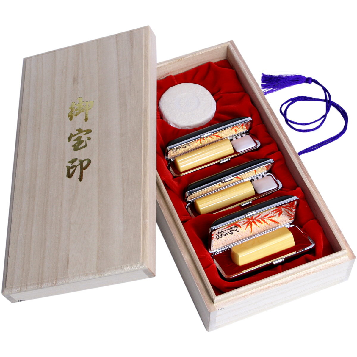 カテゴリトップ:日用品雑貨・文房具・手芸>印鑑・ハンコ>ケース付印鑑セット ☆月間優良ショップ2025年10月度受賞☆彡 法人用印鑑セット 薩摩本柘植 名称 薩摩本柘植 法人用印鑑セット 印材 本柘植 ケース 黒牛皮ケース セットケース 朱肉付き桐箱 サイズ 実印:18.0mm×60mm 銀行印:16.5mm×60mm 角印:21.0×60mm 桐箱:280×135×60mm 特徴 吉相印鑑の会社・法人用三印セットです。会社は登記から始まりますがこれには会社の実印を用います。実印は契約書や財産登記などの重要書類に押すことになり、銀行で使う印は実印とは別に銀行印を届けます。納品書や領収書に用いるのは角印となり会社はこの三つの印鑑によって維持・運営されていきます 手彫り仕上げですので独特の温もりと力強さを与えてくれ何より全く同じ印鑑は制作者といえども二度と作れません。偽造防止という観点からも最... |