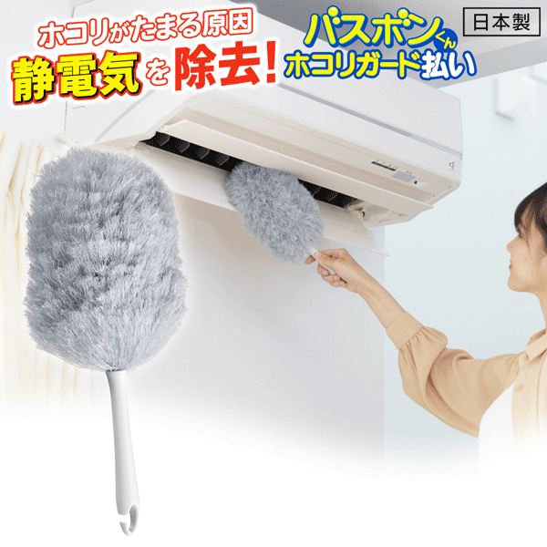 日本製 抗菌加工 バスボンくん ホコリガード払い ホコリがたまる原因になる静電気を除去! ホコリを取りながら除電してホコリ対策! ホコリが溜まる原因の「静電気」を除去! 一度にホコリと静電気を除去できるホコリガード払いです。 壁や天井、テレビの周り、エアコン、照明の傘、 冷蔵庫、カーテンレール、観葉植物などに。 コンセント・ケーブル周りをキレイにすることで、 トラッキング火災防止にもなります♪ 花粉が飛散する季節や乾燥して静電気が起きやすい季節には、 玄関に本商品を置いておいていただき、 服に付着した花粉や静電気除去にもお使いいただけます。 静電気を除去することにより、ホコリが付着しにくくなります。 除電することで一度取り除いたホコリがつきにくくなり、 掃除の回数も格段に減らせる! 一度の掃除でホコリ除去+静電気除去ができるので時短・ラクラク★ ■ アミ目繊維がホコリをしっかりキャッチ! ... |