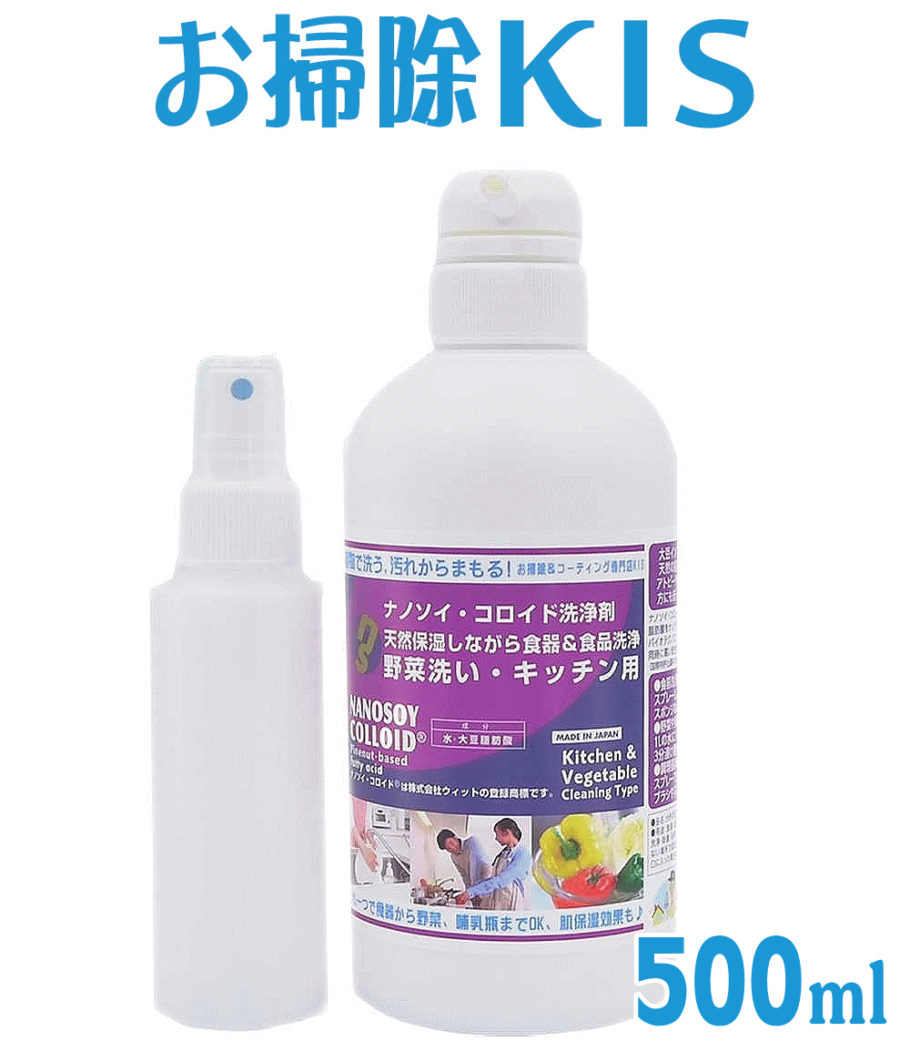 アトピー/敏感肌の方も安心!野菜洗い台所洗剤はお任せ♪ 化学物質過敏症やアトピーなど、薬品を使うことに抵抗のある方にオススメなのが、天然の大豆成分だけで作られた、人・環境に優しい天然洗剤のナノソイコロイド洗浄剤シリーズ「キッチン台所・野菜洗い用」。「手袋」をせずに、直に洗うことで皮膚の改善・美肌機能が働くため、手荒れ・炊事シワにお悩みの方に最適。調理器についたベタつき皮脂汚れ、炊飯器についたベトツキはもちろん、野菜や果物・赤ちゃんの哺乳瓶まで安心して洗うことができます。 サイズ・内容量 500ml(成分:大豆脂肪酸・大豆レシチン・大豆イソフラボン・α-トコフェロール)、ココナッツ脂肪酸、水) 希釈用空スプレー容器1本 ※容器形状は予告なく変更になることがあります。 界面活性剤は一切不使用&生分解性99%以上の洗剤なので、そのまま川・海に流せます。自宅をお掃除しながら私達地球の生態系を守り、... |