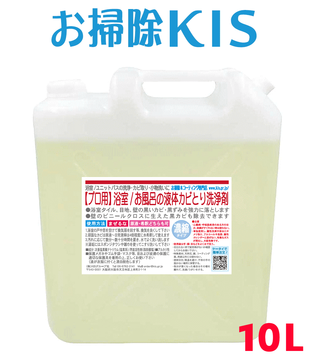 バスルーム,ユニットバスの黒カビとりはお任せ♪ こすらずに落とせる液体タイプの業務用カビ取り洗剤。ジェルタイプでは作業のしづらい、浴室全体に生えたカビ掃除やタイル目地・排水口・洗面台のヌメリ除去、部屋の壁紙に生えた黒カビ退治に最適!作業者の安全を考えた低臭タイプで、某ホテルチェーンやスポーツクラブ様でも採用されたプロユース仕様!業販サイズの特大10L&ひねりコック付きで、誰でも補充が簡単です♪感染予防・ウイルス対策・除菌に有効な次亜塩素酸ナトリウム配合の業務用カビ取り剤です。 サイズ・内容量 10000ml(=10L)(成分:塩素系 次亜塩素酸ナトリウム、脂肪酸塩 界面活性剤 液性:アルカリ性 ★希釈してお使いいただけます!(下記は目安) ・部分的な頑固なカビ取りのみ→原液を塗布 ・カビ取りがメインとなる浴室全体掃除→2〜3倍 ・日常的な普段の浴室全体掃除→4倍以上 ●お客様よりお問い合わ... |