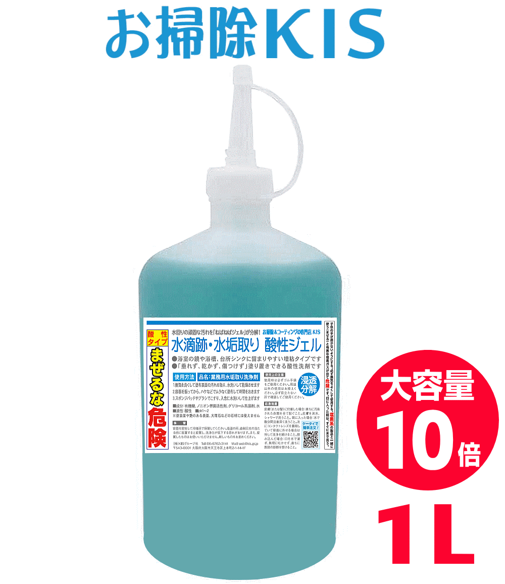 垂れず,乾かず,傷つけない水アカ用洗剤はお任せ♪ 「垂れず・乾かず・傷つけず」に塗り置きで水垢を溶かして除去するジェル状タイプの酸性洗剤。トロリと粘り気のあるジェルが壁面にも留まって洗剤成分を浸透。特に傷をつけたくない新築や新居の水周り(キッチン・浴室・トイレ・洗面台)掃除や加湿器・除湿機に付着したカルキ取りに最適です。湯垢で汚れた浴室内の小物洗いにも効果的。 サイズ・内容量 1000ml(成分:クエン酸、リン酸、水、非イオン界面活性剤、グリコール系溶剤)液性:酸性 備 考 「物だけでない安心を。」プロのお掃除やさん直伝&書き下ろしの専用説明書付です♪ スマホで 買い物♪ QRコー... |