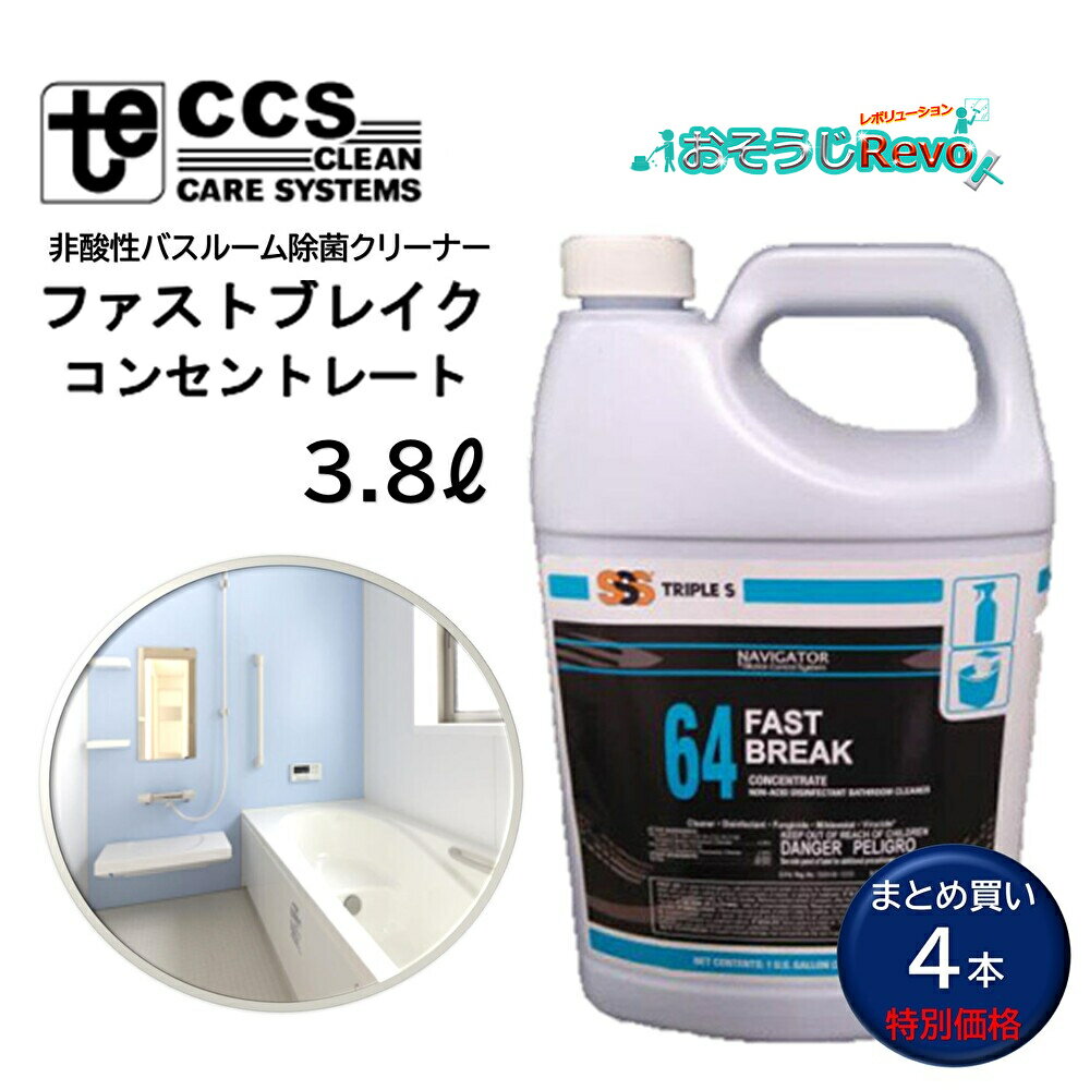 まとめ買い特別価格 濃縮タイプ非酸性バスルーム除菌クリーナー ■品番:FBCCS■メーカー:SSS(トリプルエス)■輸入元:東栄部品■商品名:ファストブレイクコンセントレート■容量:3.8L■入数:4本セット■主成分:アルキル(C=12〜18)(ベンジル)(ジメチル)アンモニウム=クロリド、ノノキシノール、四ナトリウム=エチレンジアミンテトラアセタート、炭酸ナトリウム、香料、染料、水■Ph:10.0?12.0(アルカリ性)■標準希釈倍率:64倍 ■検索ワード:バスクリーナー、風呂洗剤、ファストブレイクコンセントレート、SSSファストブレイクコンセントレート、東栄部品 ●メーカー直送または当ショップより発送●業務用扱い ■特徴 ・洗浄、除菌、消臭を一度に実施 ・広域スペクトラムのバクテリアに対して効果的 ・非酸性処方のため、金属等を傷つけず使用者にも安全 ・新鮮な香り ■備考 ・バスルーム用... |