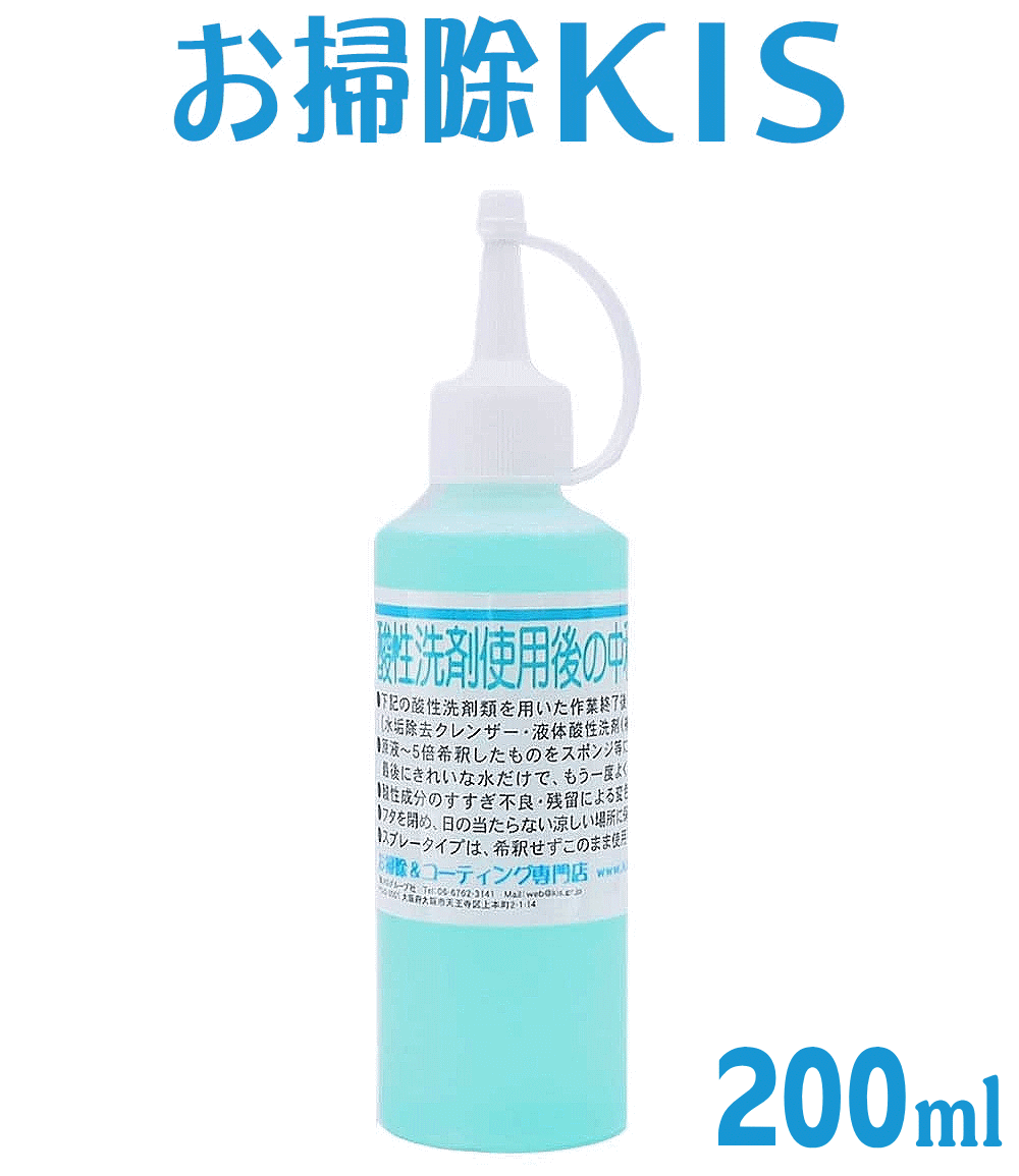 酸性洗剤による変色予防の中和洗剤はお任せ♪ 水垢取り洗剤(クレンザータイプ・液体タイプ(補助液)・ジェルタイプ)の作業終了後に使う中和洗浄剤。酸性成分が残っていると起きやすい材質の白化・変色現象を防止します。除菌防臭剤配合で軽度の油・皮脂汚れ落としにも効果があります。 サイズ・内容量 200ml(液性:弱アルカリ性 成分:界面活性剤(ポリオキエチレンアルキルエーテル)アルカリ剤、金属イオン封鎖剤、除菌剤) 【作業手順】 1.酸性洗剤(水垢除去クレンザーや液体酸性洗剤・補助液、酸性ジェル等)での掃除&念入りに水洗い(対象面を水+スポンジでこするなど) 2.原液〜きれいな水で5倍希釈した本品(中和剤)をスポンジなどに含ませ、対象面を洗浄 3.きれいな水で洗い流し、拭き上げます ※対象面によっては、まれに変色する場合がありますので、目立たない場所で有無を確かめてからご使用ください スマホで 買い... |