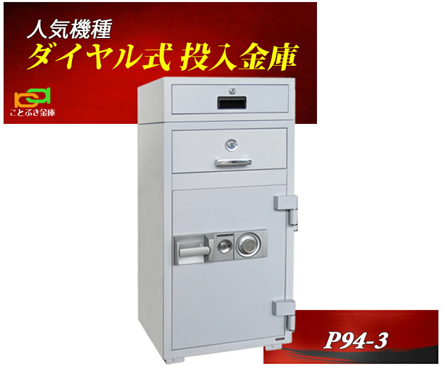 時間外の集金時でも安心 投入口から入庫し 収納庫扉から、回収が出来ます 暗証番号(テンキー式)で開閉します 暗証番号は4桁から16桁まで1種類登録可能 防犯性、操作性共に抜群 上部には引き出しに小銭等を収納できます 品番 P94E-3 種類 投入金庫 ロックタイプ テンキー式 耐火金庫 外寸 高さ1,103 × 横幅494 × 奥行555mm 内寸 高さ480 × 横幅345 × 奥行341mm 投入口 高さ104 × 横幅309 × 奥行185mm 重量 163 kg 内容量 56 リットル(下部収納庫部分) 性能 一般紙用1時間耐火試験合格品 付属品 最上部(引き出しのカギ2本) 真ん中(投入口カギ2本) 下部(庫内扉カギ2本) 山口県(法人様以外)、 沖縄、北海道、離島は送料が異なります 配送は月曜日から土曜日(日曜日・祝祭日以外)の9時から17時までとなります。 時間指... |
