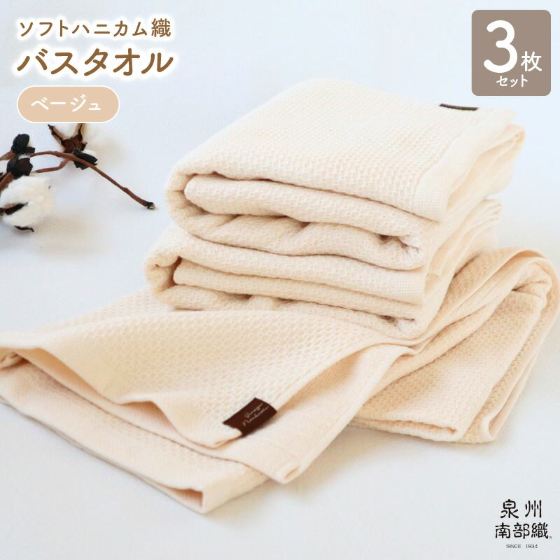 返礼品説明 名称 【ふるさと納税】【ソフトハニカム】泉州南部織 バスタオル3枚セット(ベージュ)+ソフトハニカム織ハーフハンカチ1枚 内容量 バスタオル 約70×130cm、約270g (ベージュ) 3枚ソフトハニカム織ハーフハンカチ 1枚(カラーはお選びいただけません)約12×25cm※画像はイメージです。 配送温度帯 常温 説明 最短翌日〜5営業日以内発送のお礼品をお選びの場合、不在日・配送先の変更は承れません。※最短翌日〜5営業日以内発送、または最短7営業日以内発送のお礼品をお選びの場合、GWやお盆・年末年始の期間は、最大14日以内に発送予定となります。予めご了承ください。※この返礼品を選ぶと使途は自動的に【泉佐野発、オーガニックファブリックブランド開発PPSプロジェクト(又は市長におまかせ)】となります。【大阪製ブランド認定品】肌に優しくしっかり吸水、ふっくらと柔らかいのに乾きやす... |