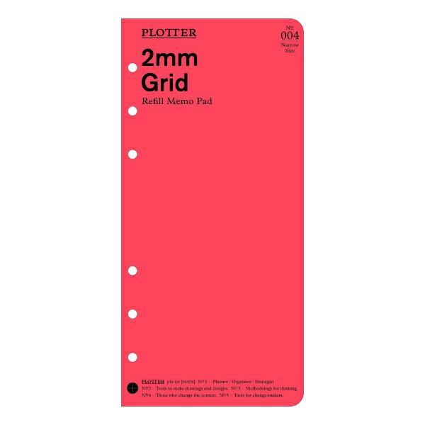 仕様商品名プロッター PLOTTER リフィル メモパッド 2mm方眼 80枚 ( ナローサイズ )サイズ・H170×W80mm内容・グラフや表の作成に使える2mm方眼・使用した日を記録できる日付記入欄・そのままアイデアメモやノートとしても、バインダーに挟んでも使える・色天ノリ仕様なのでページがバラバラにならない・そのままバインダーに挟め、紙がノートのようにまとまっているのでページががたつかずアイデアをメモしやすい・紙の耐久性を維持する角丸デザイン仕様・本文:DP 用紙(クリーム)※1・原産国:Made in Japan・(※1)「DP用紙」とは特別抄造のオリジナル手帳用紙「Designphil Pocketbook用紙」の略称てす。備考※パッケージや仕様はメーカー要因により予告なく変更になる場合がございます。ナローサイズのリフィルはこちら・プロッター PLOTTER リフィル 2023年... |