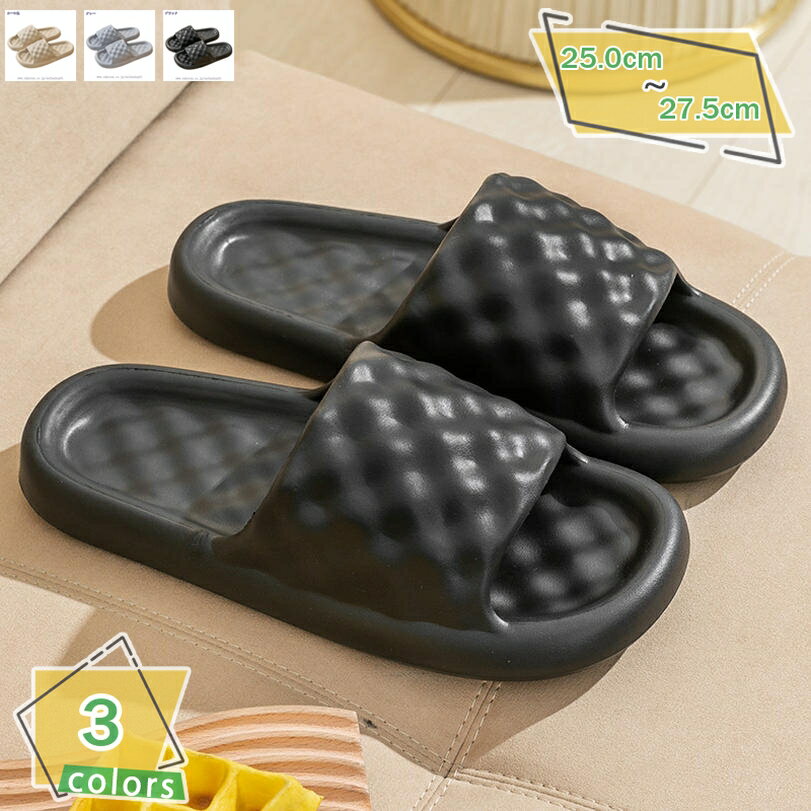表地:EVAメイン素材:EVA【商品説明】◆メイン素材: EVA ◆カラー:ブラック、グレー ◆サイズ:25.0cm 25.5cm 26.0cm 26.5cm 27.0cm 27.5cm ※EVA素材の注意点は縮みと褪色の恐れがありまから、不使用時に日が当たらない所に置いてください。【注意】スリッパは通常少し狭いので、1サイズ大きいサイズを選択することをお勧めします。素材EVA、美しくスタイリッシュ。 超軽量で柔軟性があり、それはあなたを倒すことなく支持的で快適です。底面に弾力性を持っていって、もっちり柔らかい履き心地が良い室内用スリッパです。素足で履いて気持ちいい肌触り、履きやすいスリッパです。滑り止め、静音効果、弾力性、耐損耗性が優れています。靴底には凹凸ストライプ摩擦を増大で滑り止め抜/群が、消音タイプで床を傷つけません。通年適用サンダルとして、男女兼用なので、どの年齢層でもご使用い... |