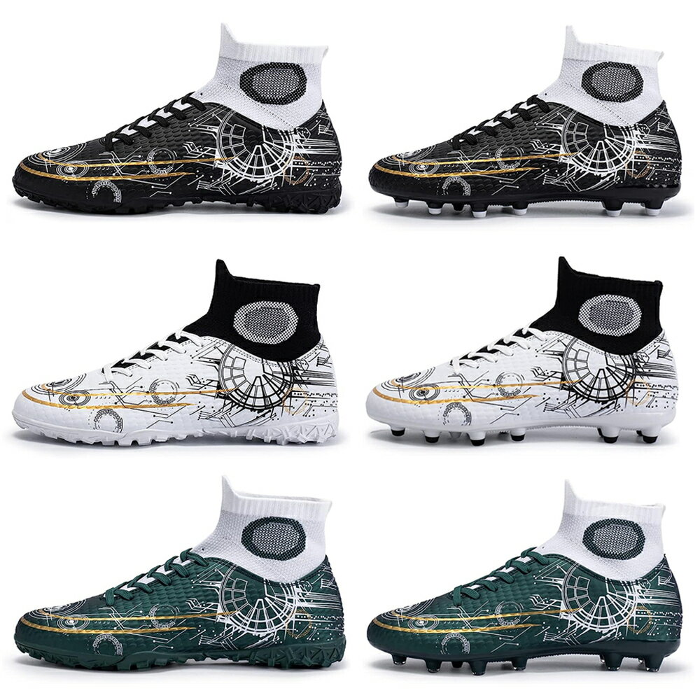 サッカーシューズ ハイカットサッカーシューズ メンズ ジュニアサッカーシューズ 専門家サッカー スボーツシューズ 滑り止め 軽量 男女兼用 22.0cm-28.0cm アウトソールにはラバーを使用しており、滑りにくいデザインで着地時の衝撃を分散させて足の負担を軽減します。 表地: ポリウレタン (PU)ヒールのタイプ: フラット留め具の種類: レースアップ柔軟/軽量:この靴は、軽くて柔らかく曲がりやすく、自由自在に歩くことができます。競技者にとっては安全で衝撃を和らげる軽量な靴を提供し、勝率を高めることができます。快適な素材:アッパーには耐久性に優れた合成皮革を採用しており、重量が軽く、耐摩耗性が強く、柔軟な足の感触をもたらし、足をしっかりと包むことでより快適なフィット感を実現しています。安定した踵:踵部分には保護設計を採用し、足をしっかりと保護します。かかと部分は自然な動きをサポートする... |