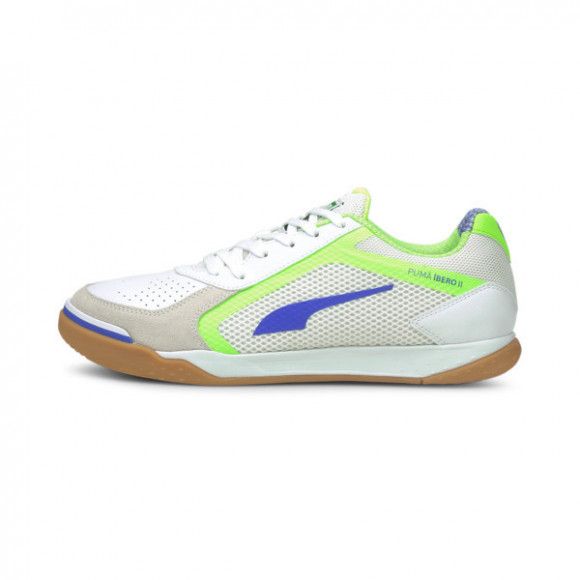 PUMA IBERO II 品目:メンズインドアフットサルシューズ シーズン:2021年秋冬モデル 品番:106567 カラー:02 プーマホワイト/ブルーメイジング/グリーングレア/ガム アッパー:天然皮革(カーフ)/スウェード/人工皮革/合成繊維 ミッドソール:合成樹脂 アウトソール:ゴム底 生産国:カンボジ... |