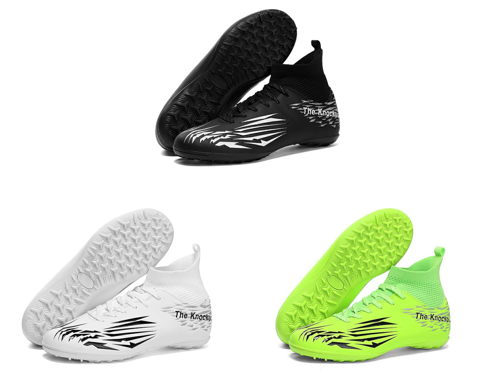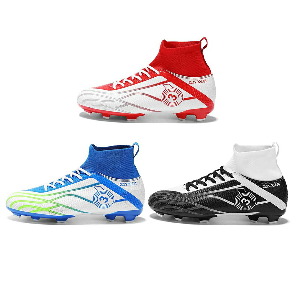サッカーシューズ メンズ サッカートレーニングシューズ ジュニア フットサル 大人 プロサッカーシューズ レディース 専門家サッカー 強い耐摩耗性 屋内アウトドアサッカーシューズ 人工芝 天然芝 男女兼用 20.5cm-29.0cm ソールはラバーとTPRスパイクパーティクルプロセスで作られ、滑り止め性能を強化し、防滑や防震機能があり、耐磨耗性も抜群です。 【快適な素材】ハイトップとニットソックスのデザインを備えたサッカーブーツスニーカーは、足首のサポートを提供し、体の安定性を高め、運動中の怪我から足首を保護します。アッパーは耐久性に優れた合成皮革を採用して、重量が軽く、耐摩耗性が強く、柔軟な足の感触をもたらし、より快適なフィット感のために足をしっかりと包みます。【良い通気性】裏面は通気性の素材を採用して、通気性と吸汗性が抜群、足を自由に呼吸させる。シューズ内の蒸れを抑え快適にトレーニング... |