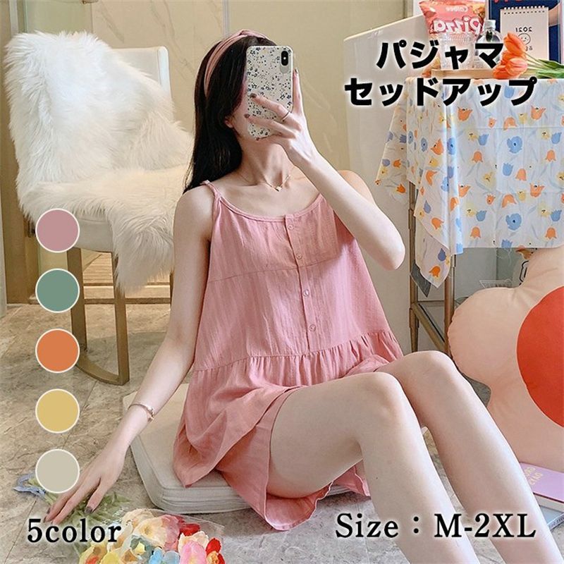 【サイズ】m-2xl【カラー】グリーン、ピンク、イエロ、オレンジ、ベージュ【ご注意】※お客様のご覧になられますパソコン機器及びモニタ、また室内、室外での撮影により実際の商品素材の色と相違する場合もありますのでご了承下さい。※装飾品はついておりませんのでご了承ください。※平置き・メジャー採寸ですので若干の誤差が生じる場合がございます。パジャマ レディース 無袖 ルームウェア 涼しい 涼... |
