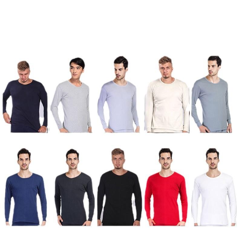 肌着 メンズ インナーシャツ 長袖 丸首 無地 綿 保温 下着 黒 赤 グレー ... |