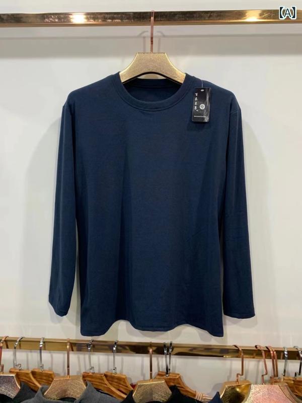 Tシャツ メンズ 男性用 トップス 秋冬 長袖 丸首 スリム 保温インナー 肌着 ポリエステル 無地 黒/コーヒー色/深グレー・素材: ポリエステ... |
