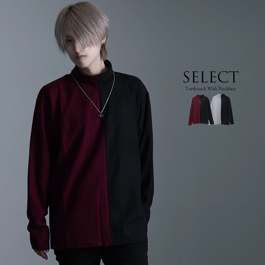| スタッフ着用サイズ スタッフA(180cm/75kg) 体型:がっちり 普段着用サイズ:L〜XL Lサイズ着用 スタッフB(172cm/75kg) 体型:がっちり 普段着用サイズ:M〜L Lサイズ着用 スタッフC(173cm/60kg) 体型:細身 普段着用サイズ:M Mサイズ着用 商品説明 CV select【シーブイセレクト】ネックレス付き配色長袖タートルネックが入荷しました。 ネック部分はモードな雰囲気漂うタートルネック仕様で襟元には取り外し可能なネックレスが付属しており、首周りを一段と引き立ててくれます。 しなやかなドレープ感と適度な張り感を併せ持っており、気楽にお洒落を楽しめるアイテムです。 トップスとしてもジャケットのインナーとしてもコーディネートのポイントに活躍してくれます。 ユニセックスで着用可能なので、男性はもちろん女性にもオススメしたいアイテム。 定番のストリート系から... |
