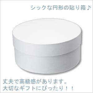 大切な贈り物を引き立てる上質なギフトボックスです! シックな円形の貼り箱です。丈夫な板紙で作られた箱に丁寧に紙を貼って仕上げました。 大切なギフトのラッピングに最適です。 ●入り数:1個 ●サイズ:内寸φ90xH38mm ●材質:... |