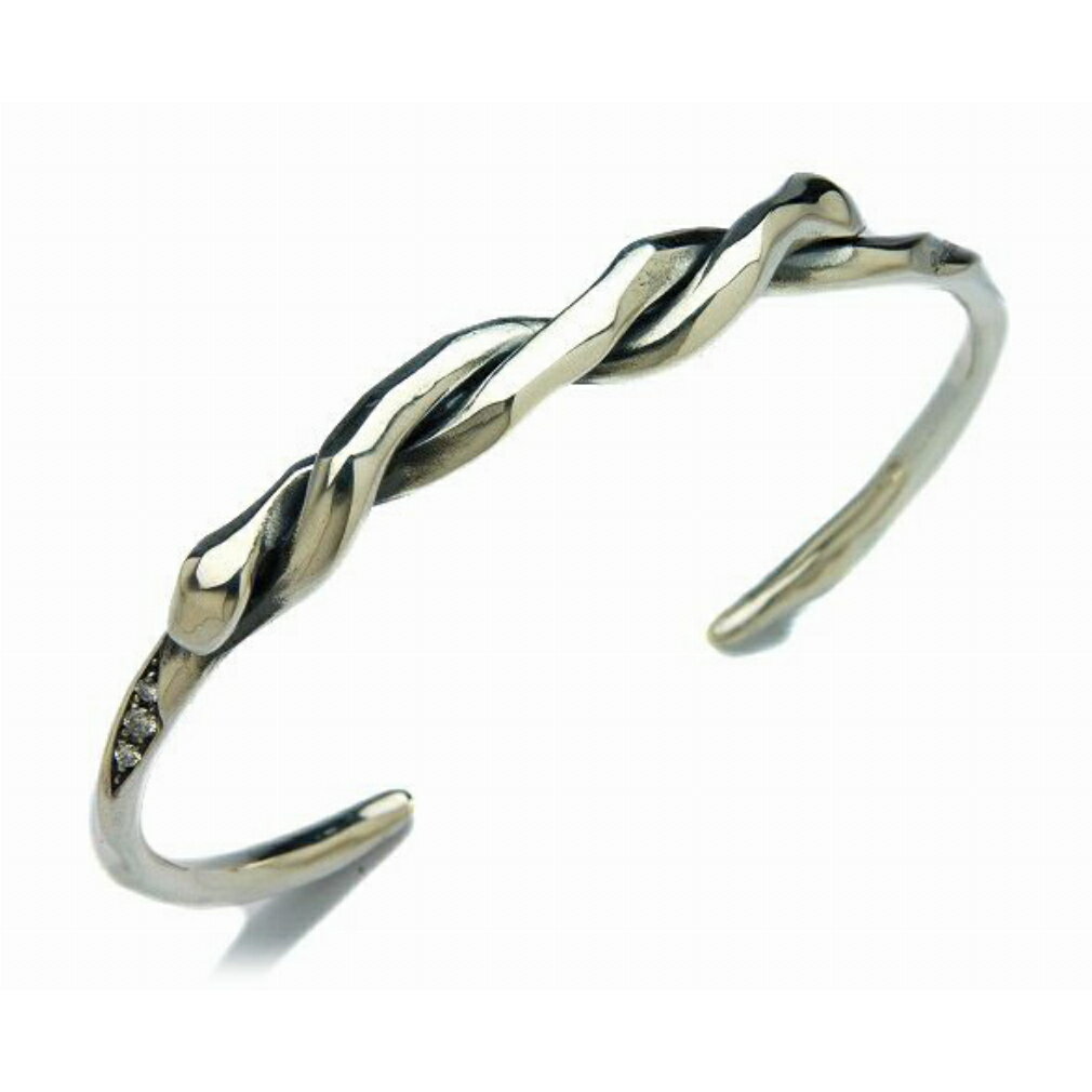 ※こちらの商品は受注制作となります。お届けに3週間〜1ヶ月前後頂きますのでご了承下さい。 ※受注制作品につきましてはご注文後のキャンセル、商品の返品・交換はお受けすることができません。ご注文内容をよくご確認の上でご注文下さい。 2匹の重なり合ったヘビをイメージしたバングル。細身のバングルを重ね着けしてあるように見えるさりげなさと、斜面に配されたジルコニアがポイント。 この商品は白ベースに金箔が施された専用BOXが付属する豪華パッケージとなっております。 商品データ ・商品番号 [DLD-310089] 素材:SILVER950 大きさ:最大バングル幅7mm 注意:画面上と実物では色具合が異なって見える場合がございます。ご了承ください。 “洗練されたロック”がテーマ 緻密なデザインが一線を画すドメスブランド (プレゼント/おしゃれ/DEAL/LTD/メンズアクセサリー/ロック/ギフト/シルバ... |