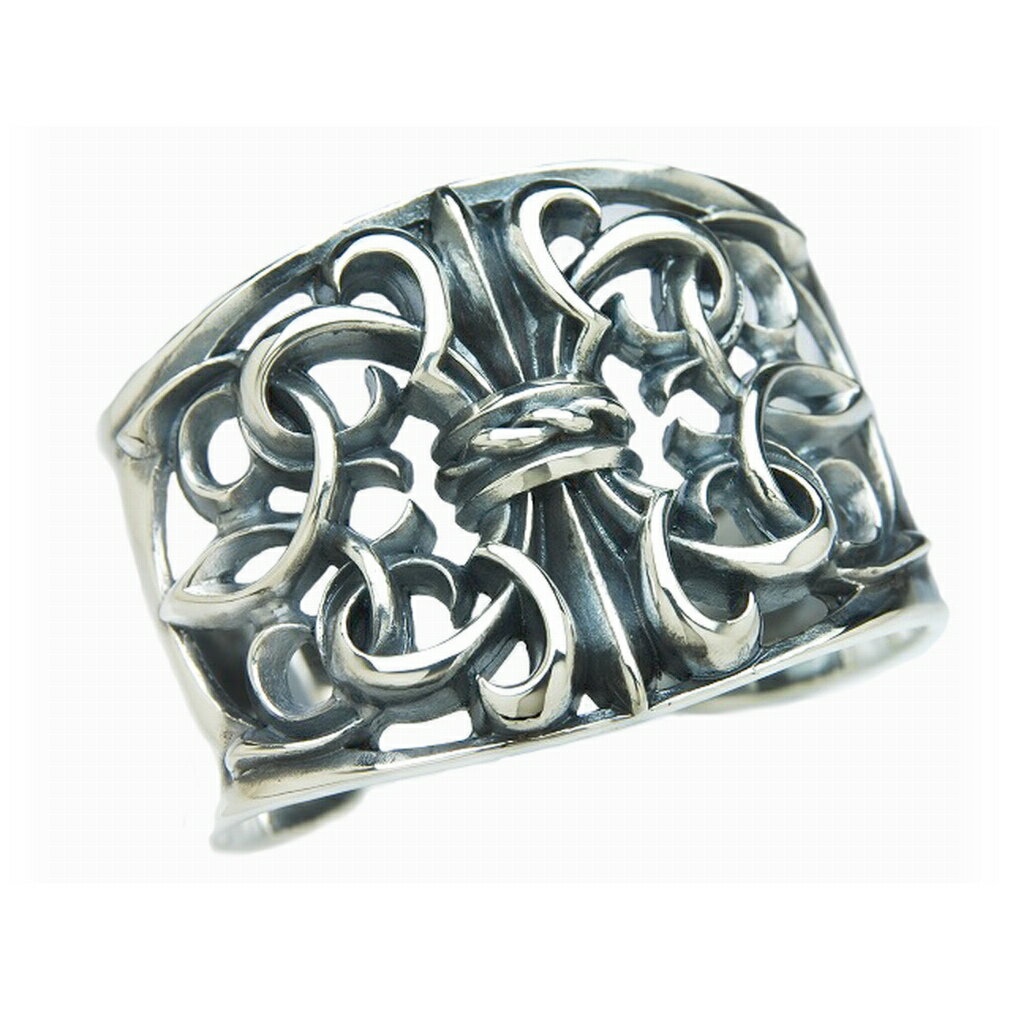 洗練されたロック - Refind Rock -DEAL DESIGN(ディールデザイン)は"洗練されたロック"をコンセプトに2001年6月に設立されたシルバージュエリーブランドです。デザイナー自身が体感してきたロック・バイカー・モードなど多岐にわたるファッションを独自のフィルターを通してジュエリーに落とし込んでいます。ジャパンメイド品質で細部まで丁寧に制作されたアイテムは他とは一線を画し、斬新なアイデアと革新的な技術は多くのファンやアーティストから支持されています。シーズン毎に発表される新作コレクションはトレンドを押さえつつもブランド"らしさ"を大切にし、デザイナーが純粋にかっこいい・面白いと思ったことを意欲的に取り入れたものづくりを心がけています。 シャープなクロスとフローラルを、迫力ある彫刻で羅列した存在感抜群のバングル。スタッズが施された帯や、エッジを効かせたサイドのラインがエレガ... |