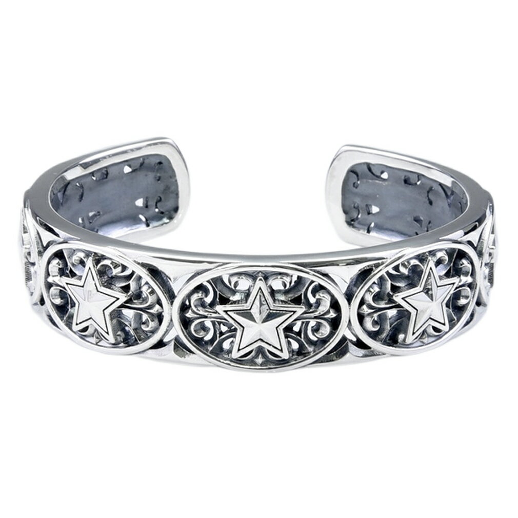※こちらの商品は受注制作となります。お届けに3週間〜1ヶ月前後頂きますのでご了承下さい。 ※受注制作品につきましてはご注文後のキャンセル、商品の返品・交換はお受けすることができません。ご注文内容をよくご確認の上でご注文下さい。 立体感のあるスターが光るオーバルシェイプを連続させた大ぶりのバングル。 インディアンジュエリーの様な無骨さと、繊細な透かしの彫刻がマッチした絶妙なデザインバランスが魅力。インパクトある見た目とは裏腹にモードやカジュアル、そしてロックなファッションにも幅広く溶け込む傑作バングル。 商品データ ・商品番号 [DLD-391496] 素材:SILVER925 サイズ:ワンサイズ(手首周り17cm〜20cm) 大きさ:バングル幅16mm 注意:画面上と実物では色具合が異なって見える場合がございます。ご了承下さい。 “洗練されたロック”がテーマ 緻密なデザインが一線を画すドメ... |